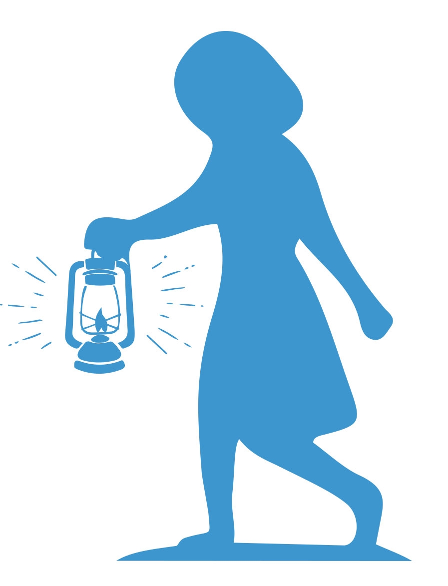 During their path, the smallest child holds the lamp and leads the way. The couple follow behind and the remaining children, whilst the father navigates the child to which direction he should take